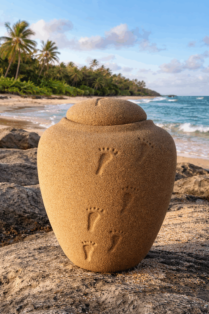 The Classic, Sand and Gelatin urn is produced using a clay-like material to create an attractive and environmentally-friendly alternative. Designed to float briefly and dissolve within four hours when placed in water, these top loading urns have openings in the bottom, allowing water to enter.